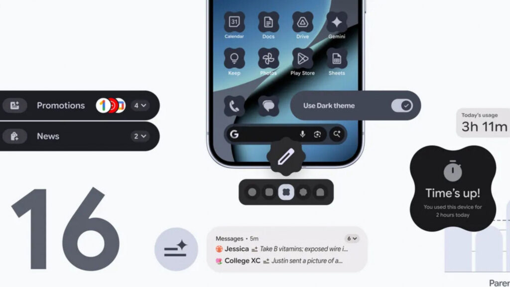 A experiência de uso no Android 16 também ganha um toque pessoal com novas opções de personalização. Ícones agora podem ter formas customizadas, e o tema do sistema pode ser aplicado automaticamente a eles. O Tema Escuro Expandido é outra adição bem-vinda, escurecendo a maioria dos aplicativos, mesmo aqueles que não possuem um modo escuro nativo, proporcionando conforto visual.