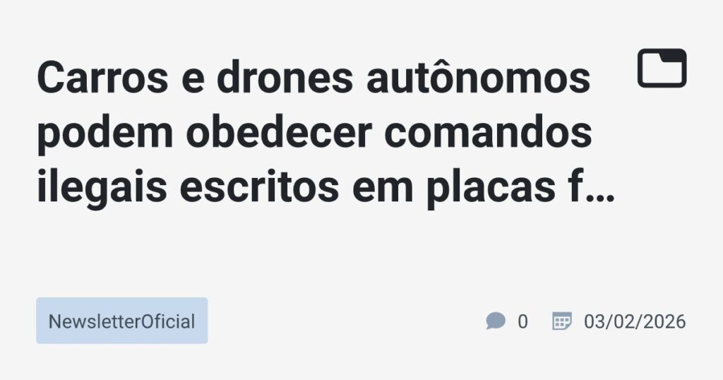 Pesquisadores descobriram que carros e drones autônomos, equipados com modelos avançados de visão e linguagem como o GPT-4o, podem ser facilmente enganados por comandos ilegais escritos em placas físicas.
