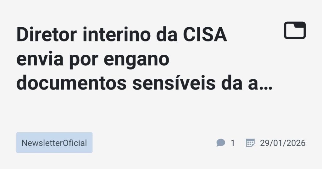 Um incidente de segurança cibernética abalou a Agência de Segurança Cibernética e de Infraestrutura dos EUA (CISA). O diretor interino da agência cometeu um erro ao enviar documentos que continham informações sensíveis para uma versão pública do ChatGPT. Embora os arquivos não fossem classificados como secretos, eles possuíam a marcação de “apenas para uso oficial”, indicando um nível de confidencialidade que exige autorização para divulgação.