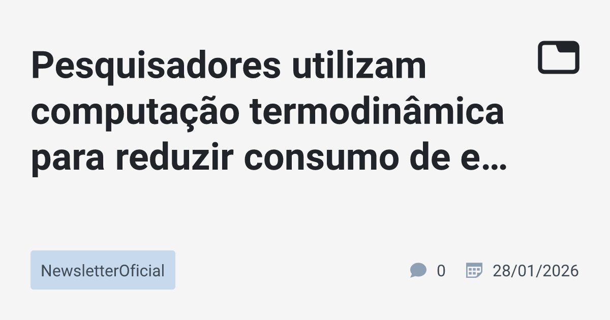 “`json { "title": "Revolução na IA: Computação Termodinâmica Promete Reduzir Consumo de Energia de Modelos de Geração de Imagens em Bilhões de Vezes", "subtitle": "Nova abordagem utiliza fenômenos naturais para otimizar o desempenho de ferramentas como DALL-E e Midjourney, abrindo caminho para uma inteligência artificial mais sustentável e eficiente.", "content_html": "<h2>Avanço Científico Busca Diminuir o … Ler mais