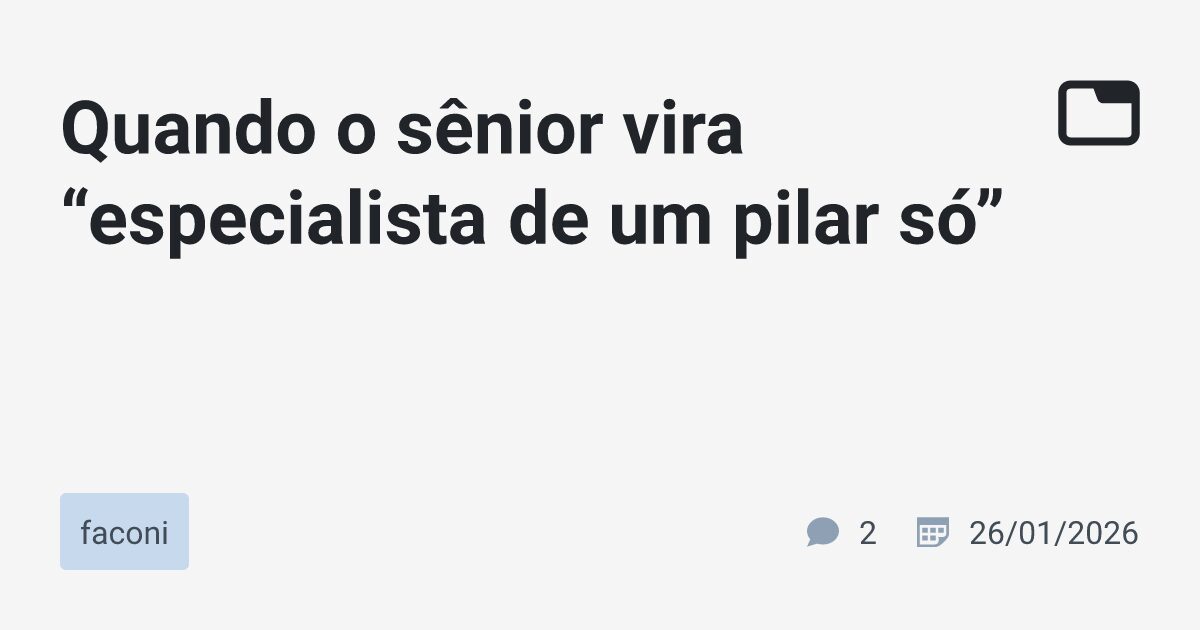 O Perigo da Superespecialização na Carreira Sênior No competitivo mercado de trabalho, a busca por especialização é natural e, muitas vezes, incentivada. No entanto, um fenômeno preocupante tem surgido: profissionais seniores que, em vez de aprofundarem conhecimentos de forma ampla, acabam se tornando “especialistas de um pilar só”. Essa hiperespecialização, embora possa trazer reconhecimento em … Ler mais